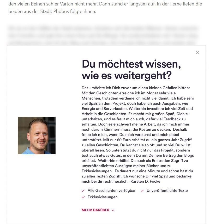 Wie ihr wahrscheinlich gemerkt habt, sind hier, auf meinem Blog viele Geschichten hinter einer Paywall verschwunden. Ich habe mich dafür entschieden, ...
