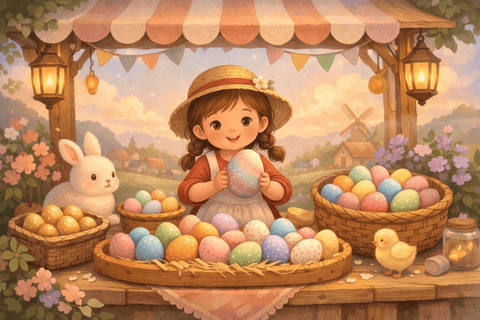 Der Marktstand mit den bunten Eiern