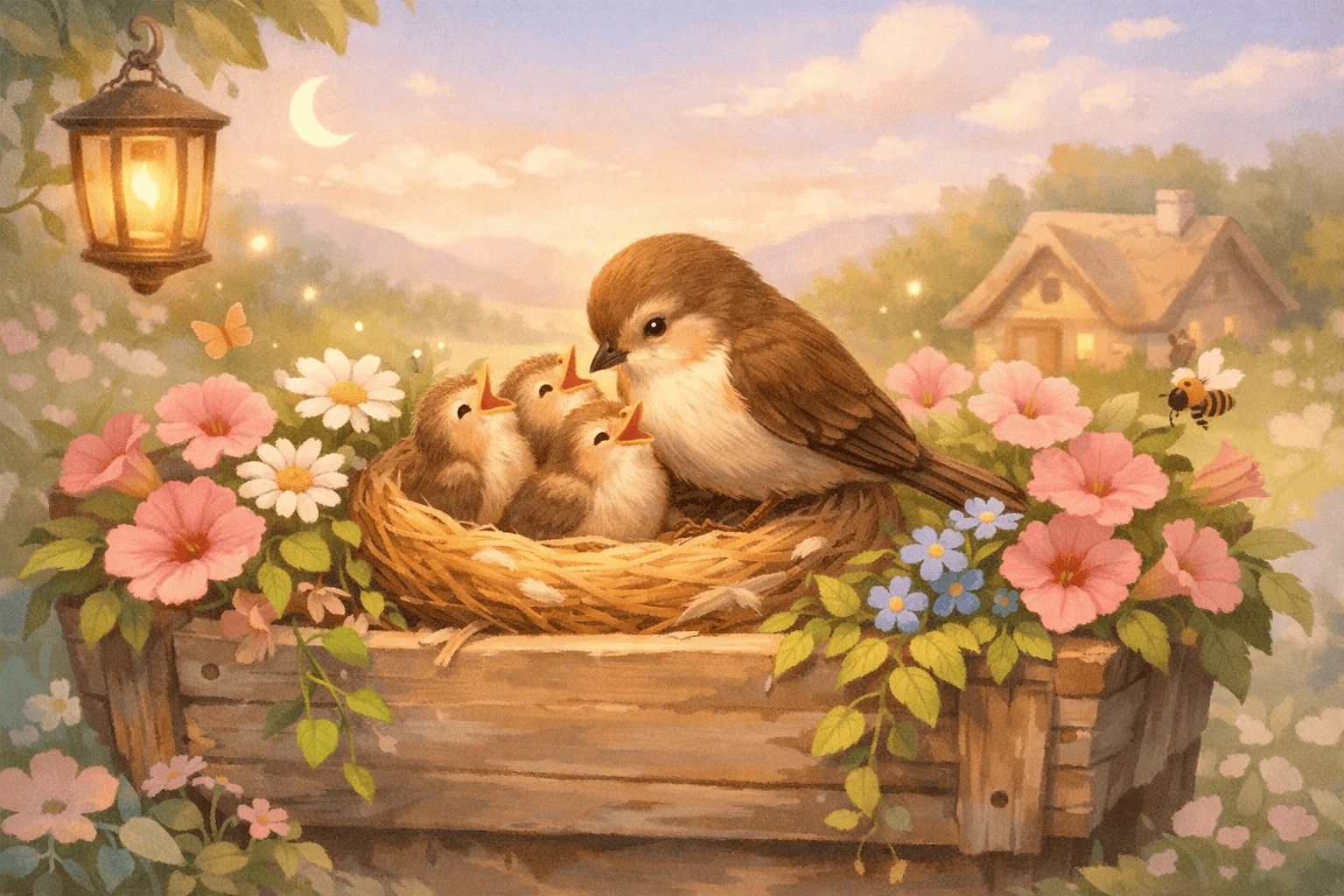 Als der Frühling ins Dorf zurückkehrte, saß Lina oft auf der niedrigen Mauer neben dem Gartenzaun und beobachtete, wie die Sonne die letzten feuchten ...
