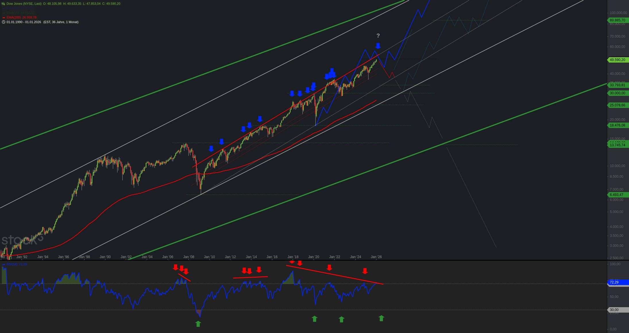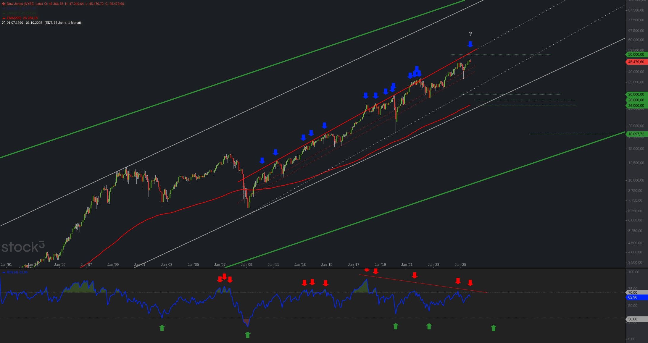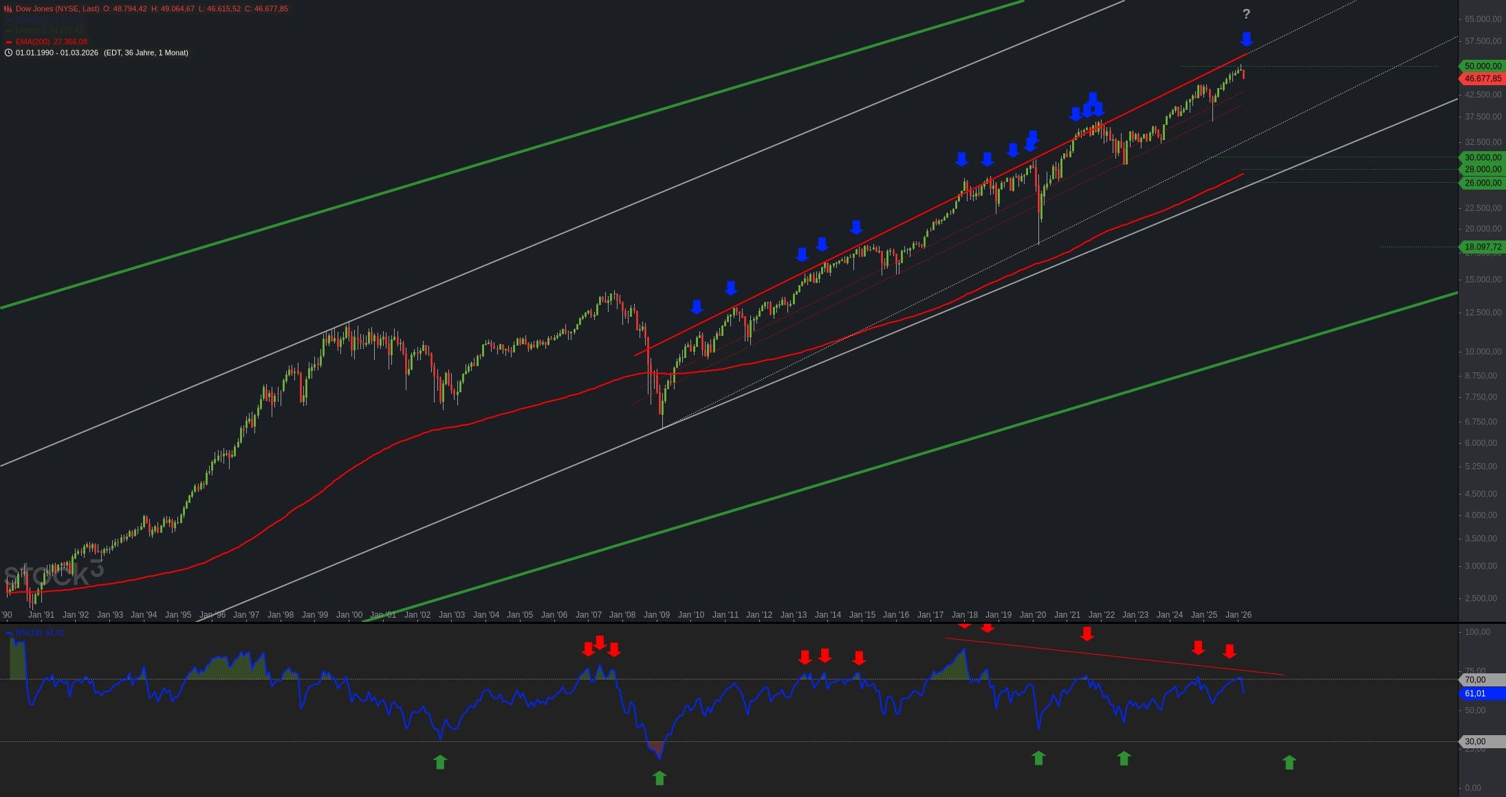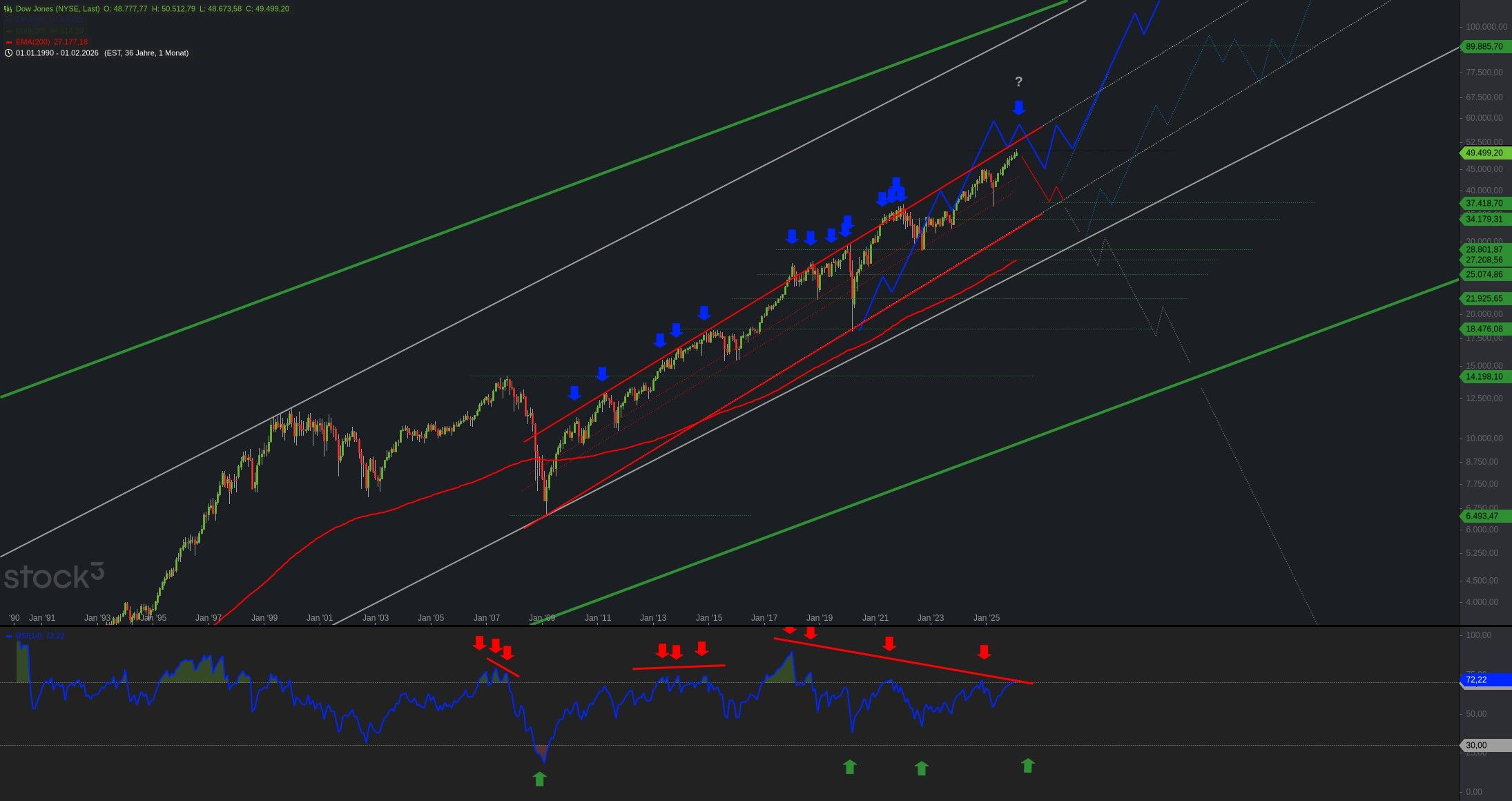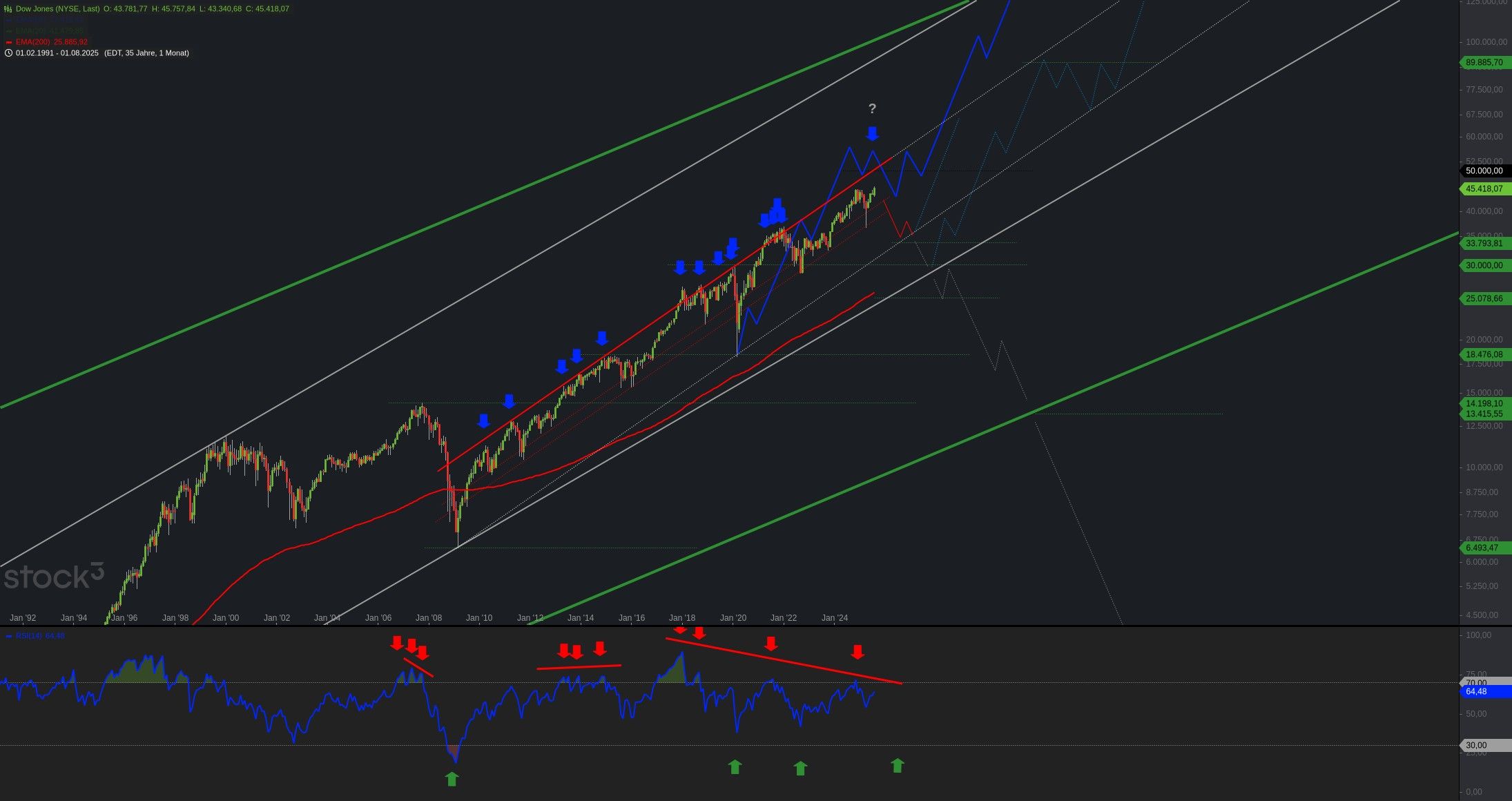 Der Dow Jones ist nahe seiner oberen Trendkanallinie. Gold und Silber korrigieren den Anstieg von Hoch zu Hoch. Und Bitcoin hängt im Tief. Viele ...