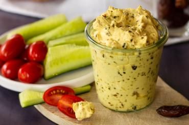 Curry Dattel Dip als perfekter Begleiter für Rohkost. Dips sind die Krönung einer jeden Rohkostplatte. Gerade die kleinen Schälchen mit cremig ...
