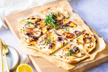 Flammkuchen mit Ziegenkäse und Honig