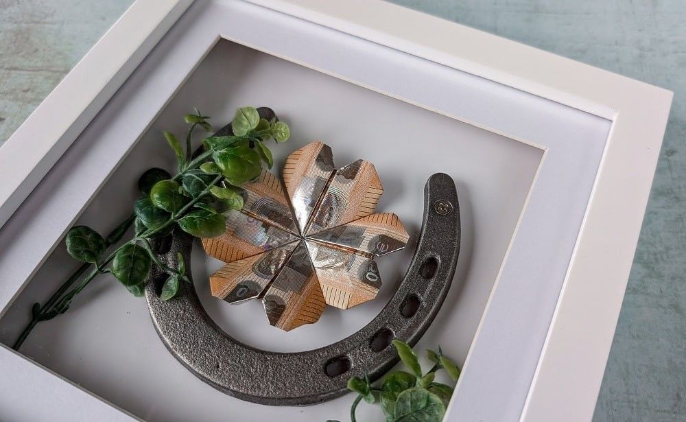 Geldgeschenk im Bilderrahmen zur Hochzeit – DIY Anleitung mit Hufeisen und Geld-Kleeblatt zum einfachen Nachmachen! Wenn du auf der Suche nach einem ...