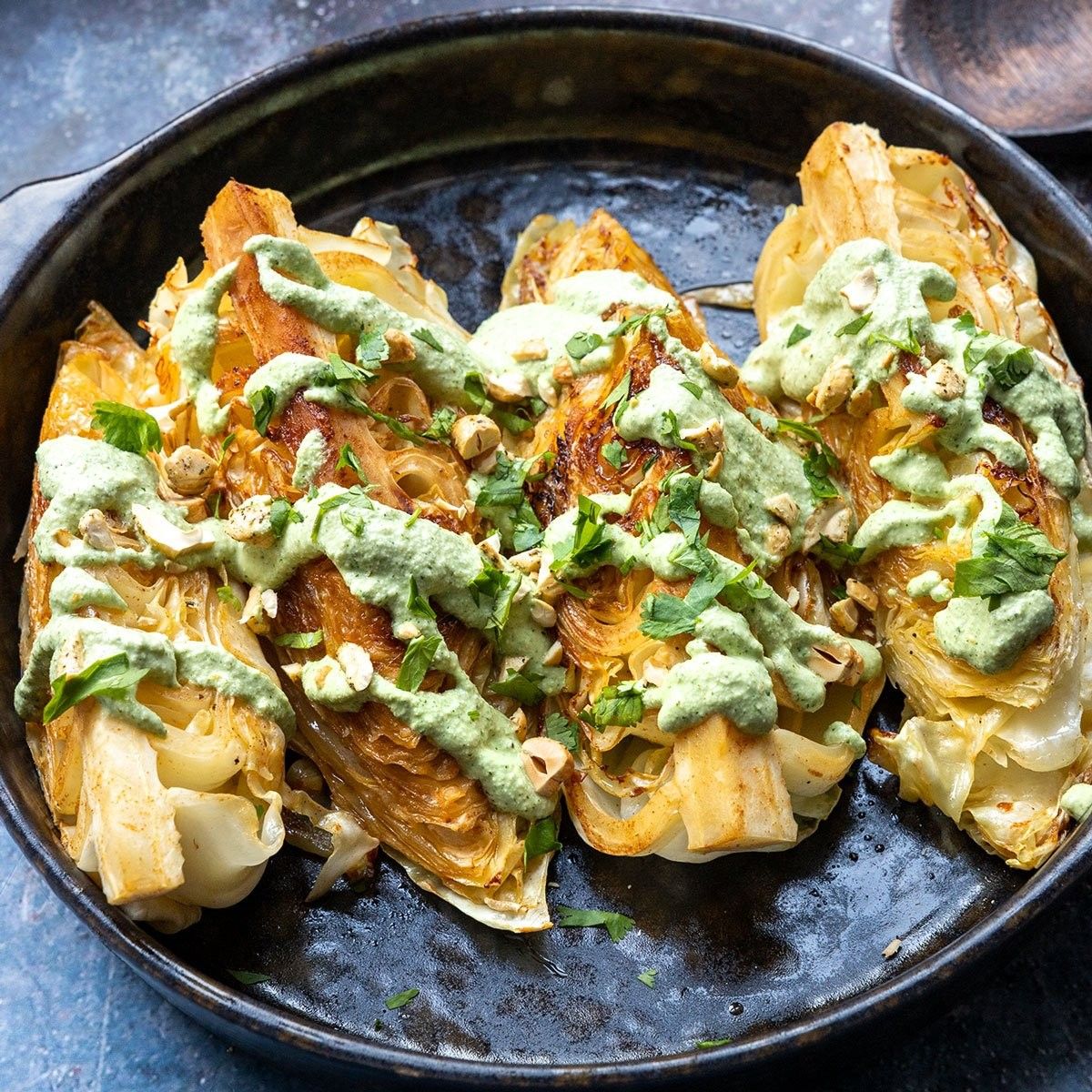 Dieser herrliche gebratener Spitzkohl kommt mit nur wenigen Zutaten auf den Tisch und schmeckt einfach unglaublich gut. Dazu eine feine Cashew-Crème ...