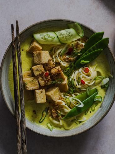 Heute dreht sich alles um vegane Rezepte. Da kommt meine gelbe Curry Nudel Suppe genau richtig. Das gelbe Curry ist sehr mild und nicht so scharf wie ...