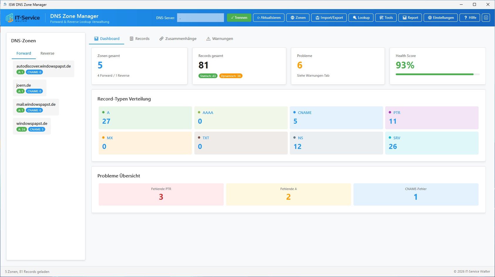 DNS Zone Manager Der DNS Zone Manager ist eine professionelle Softwarelösung für die effiziente Verwaltung und (automatische) Überwachung von Windows ...