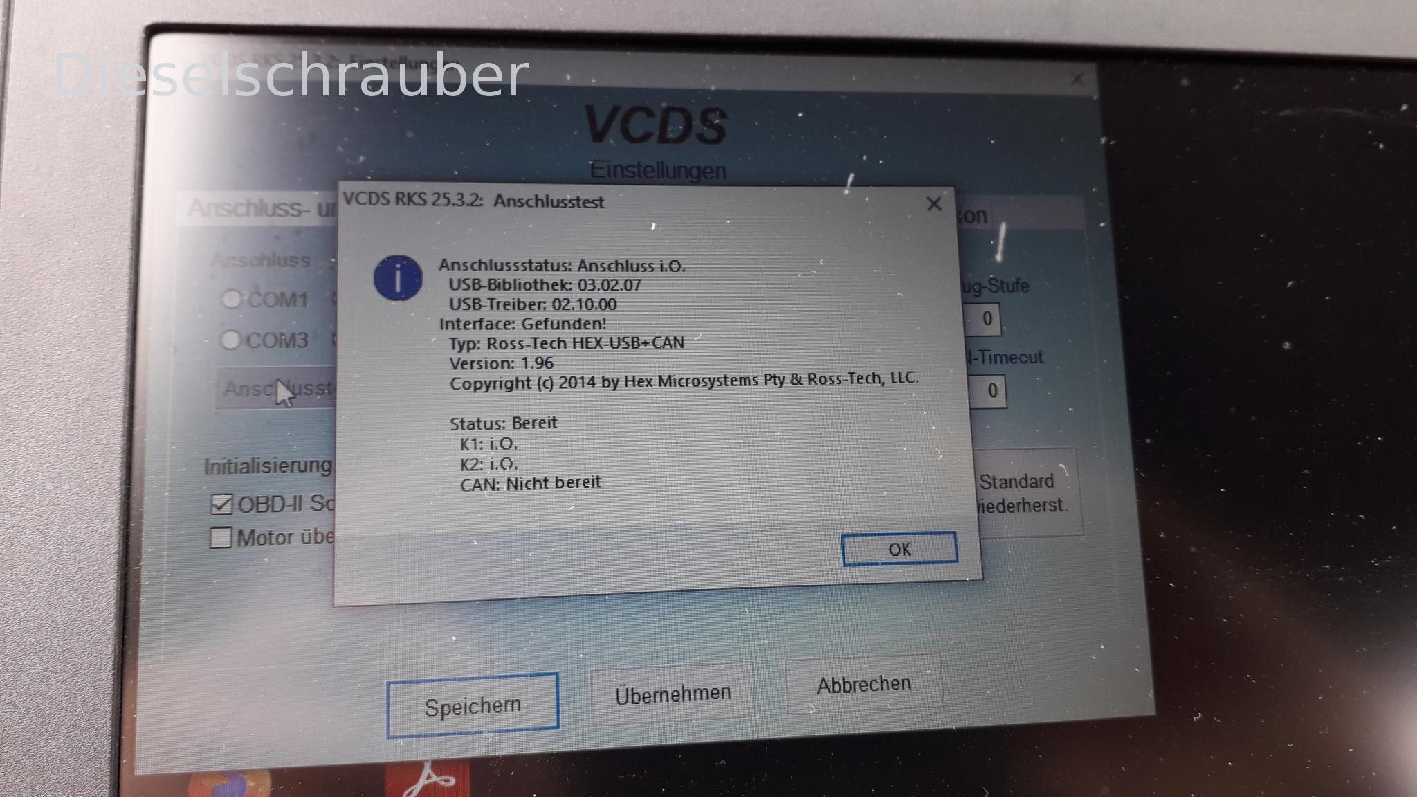Hallo Gemeinde, nachdem mein Laptop den Geist aufgegeben hat, habe ich mir einen anderen beschafft und VCDS darauf installiert.