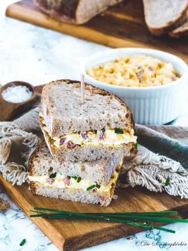 Ein frischer, selbstgemachter Eiersalat mit Zwiebeln und Bacon ist einfach total lecker. In Kombination mit frischem Brot ist das einfach ...
