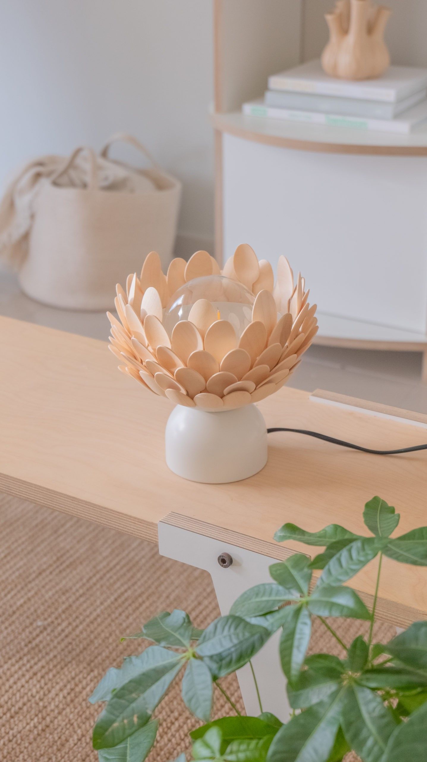 Die Ikea ACKJA Tischlampe dient als Basis für einen kreativen Lampen-Hack. Mit Holzlöffeln und Sprühfarbe wird ein floral-natürlicher Look erzeugt. ...