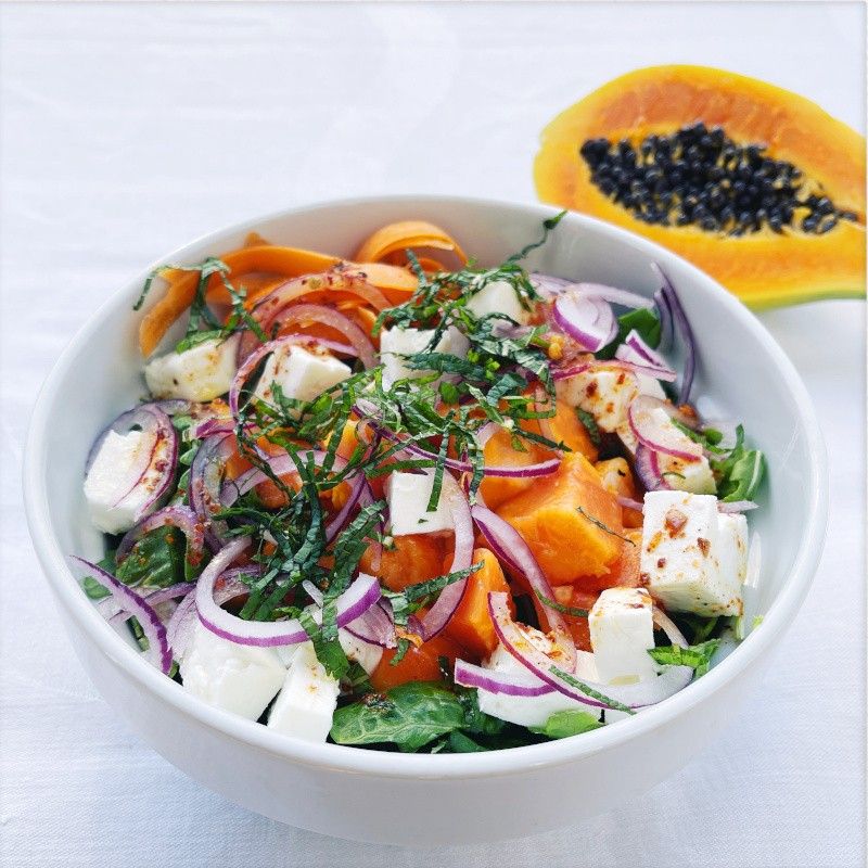 Papaya-Feta-Salat mit Chili-Honig-Dressing