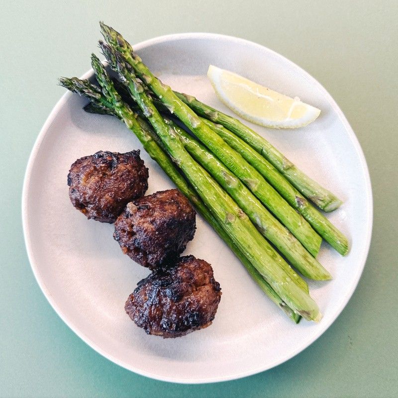 Funky Fleischbällchen mit grünem Spargel