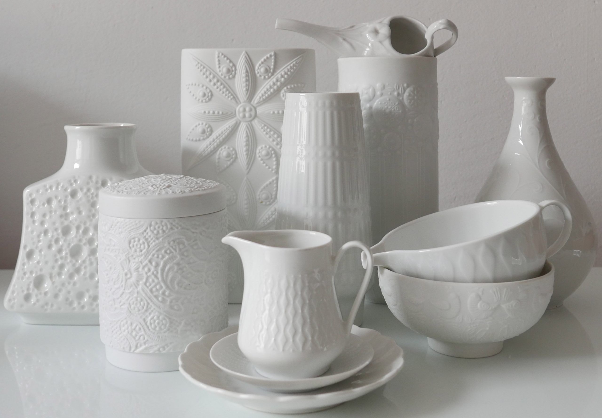 Weiße Reliefkeramik